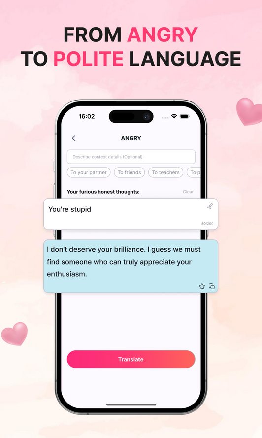 Words hurt! We get it—sometimes, emotions can run high, and words may sting a little too much. But fear not! Empai is here to transform those heated moments into a sea of warmth and affection. Say goodbye to toxic communication and hello to a new era of understanding and love. Strengthen your connection, rebuild trust, and watch the power of positivity transform your relationship. Try it today and pave the way for a more loving and harmonious connection!